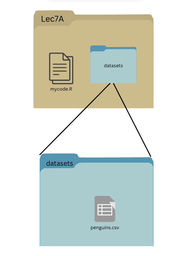 If our working directory is Lec7A, what is the absolute file path to penguins.csv?