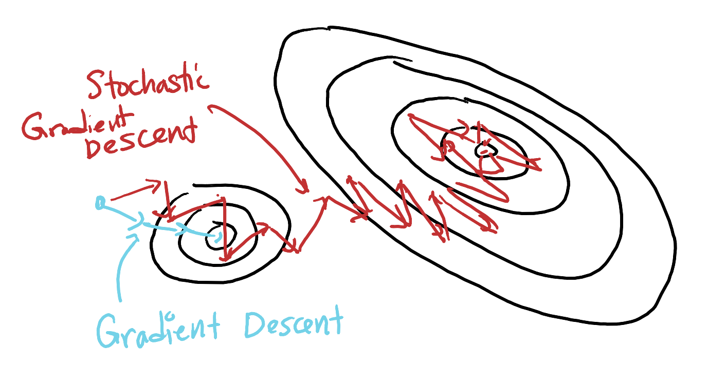 - The randomness in the gradient estimates helps SGD escape poor local minima and saddle points.