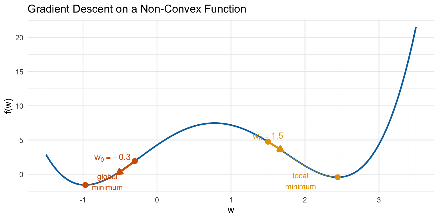 - Whereas convex optimization problems have a single global minimum, non-convex problems can have many local minima and saddle points.
