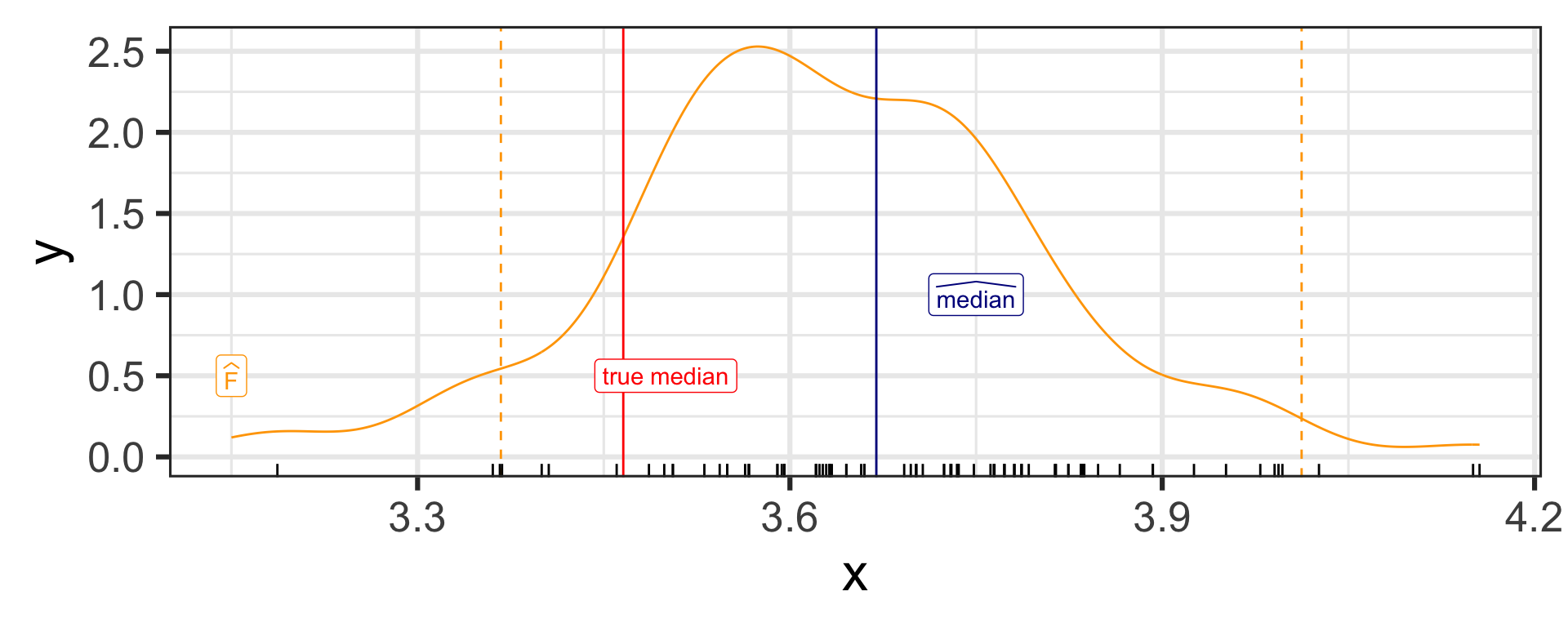 \(\hat{F}\) is the “empirical” distribution of the bootstraps.