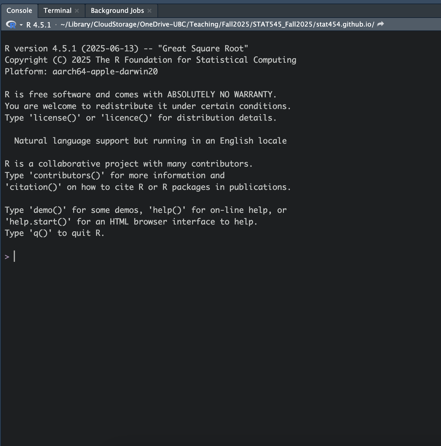 Install (or update to) the latest release R on your computer (4.5.1 currently):