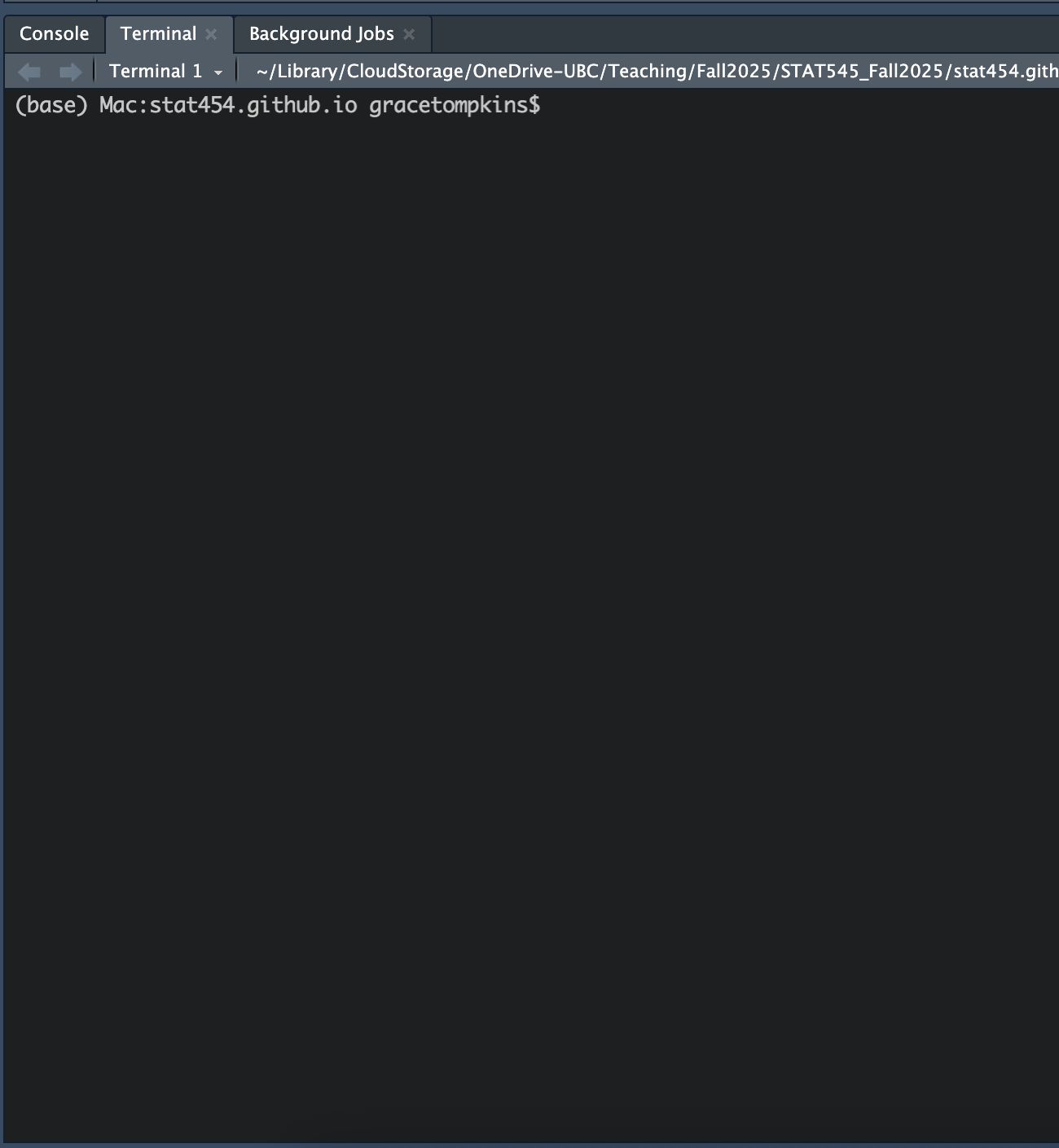 Configure Git: In RStudio, navigate to the Terminal or Shell (see below).