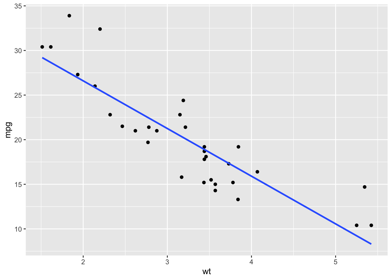 ggplot(mtcars, aes(x = wt, y = mpg)) +
